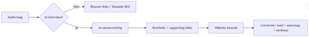 Zoekvraag → AI-samenvatting → Bronlinks → Website bezoek → Conversie